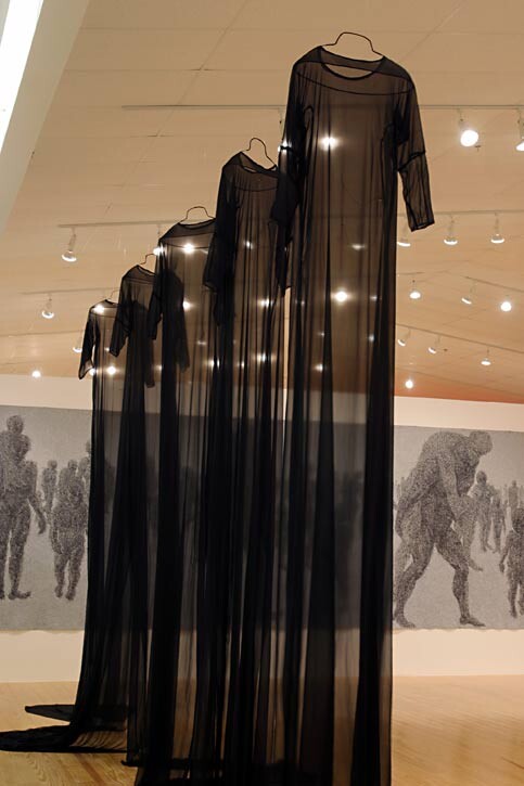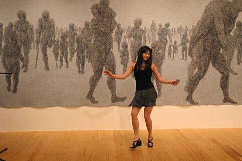 Linking ancient and modern myth, Mustafa Al Hallaj uses fantastic and folkloric imagery in his 296-foot-long print, Self Portrait as God, the Devil and Man. Emily Jacir’s video installation Crossing Surda is a document of Jacir’s experiences, some banal, some harrowing, of crossing the militarized Surda checkpoint that separates Ramallah, where she lives, from Birzeit University, where she teaches. In I, Ishmael, Suleiman Mansour creates clay “emblems of decay” that are “dry, cracked and distorted, reminding us of dispersion, waste, pain and death.”